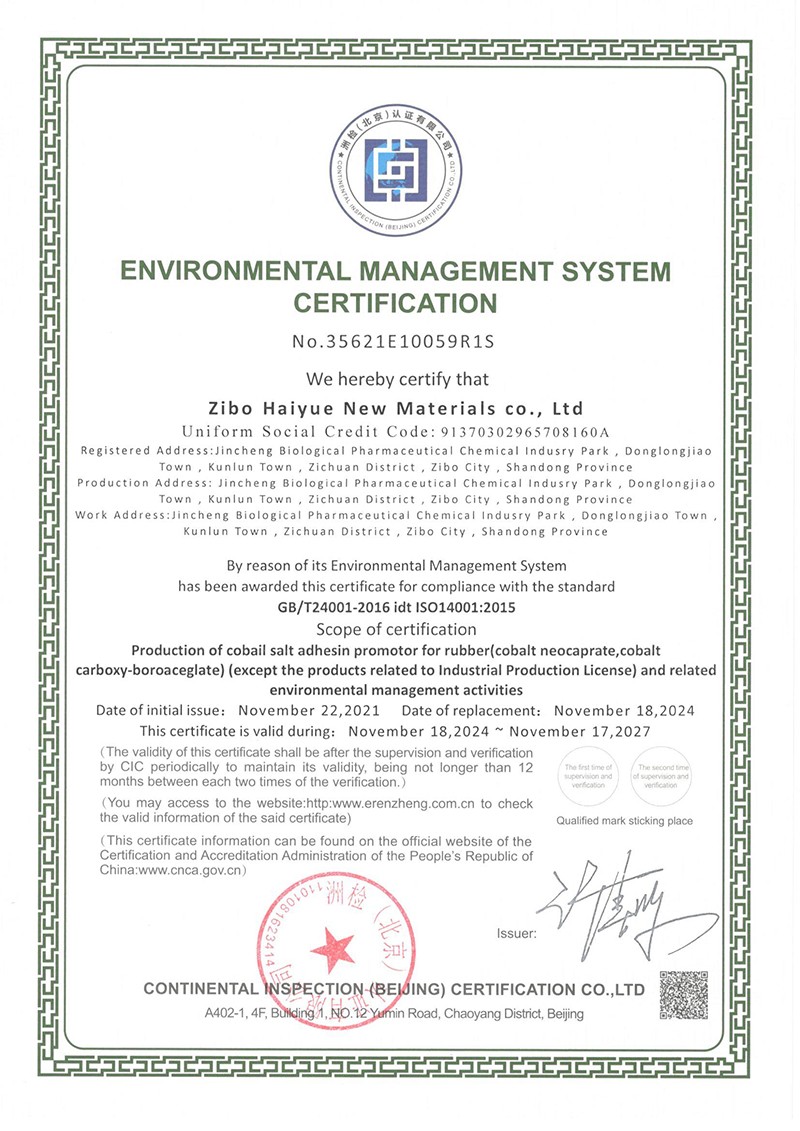環境管理體系認證證書-英文